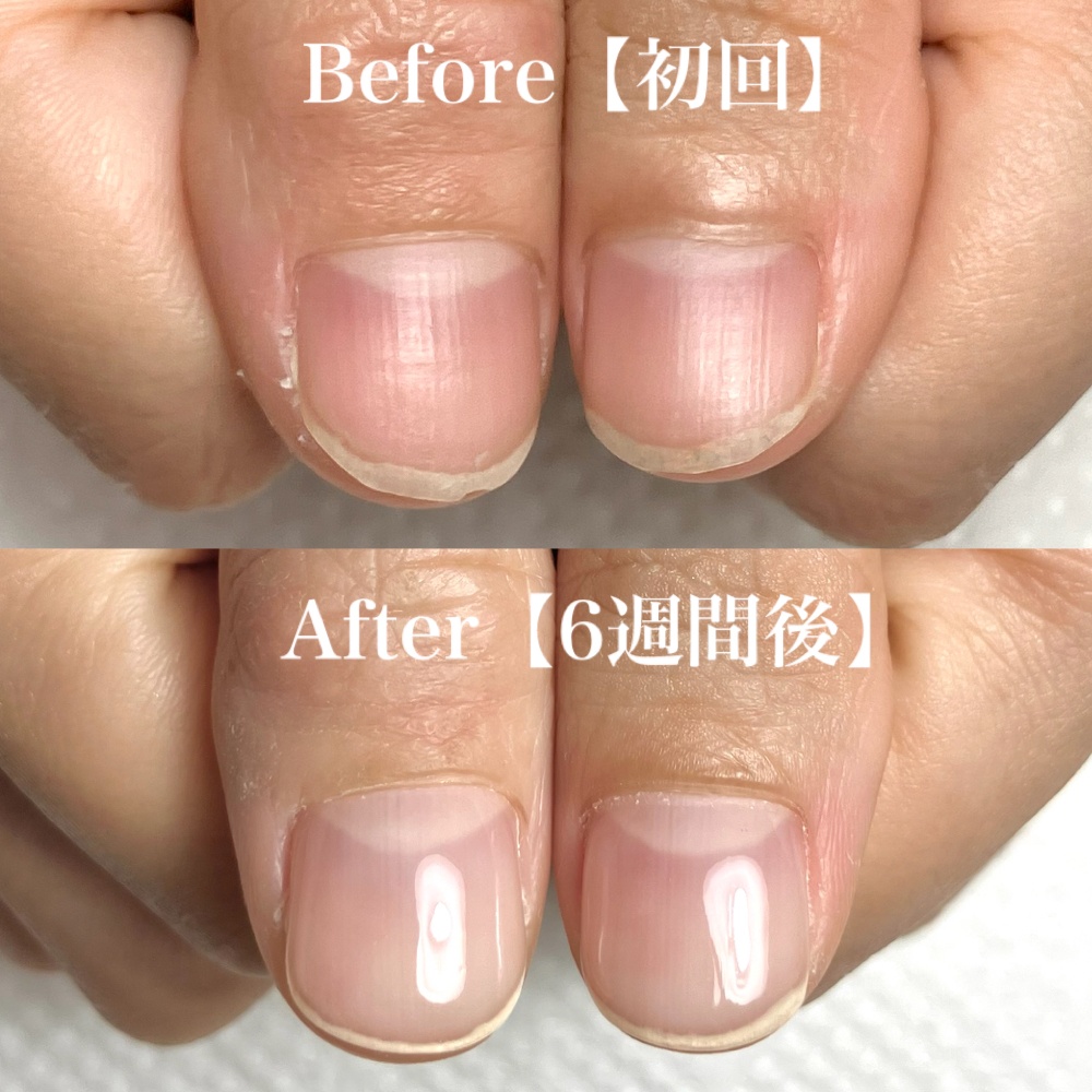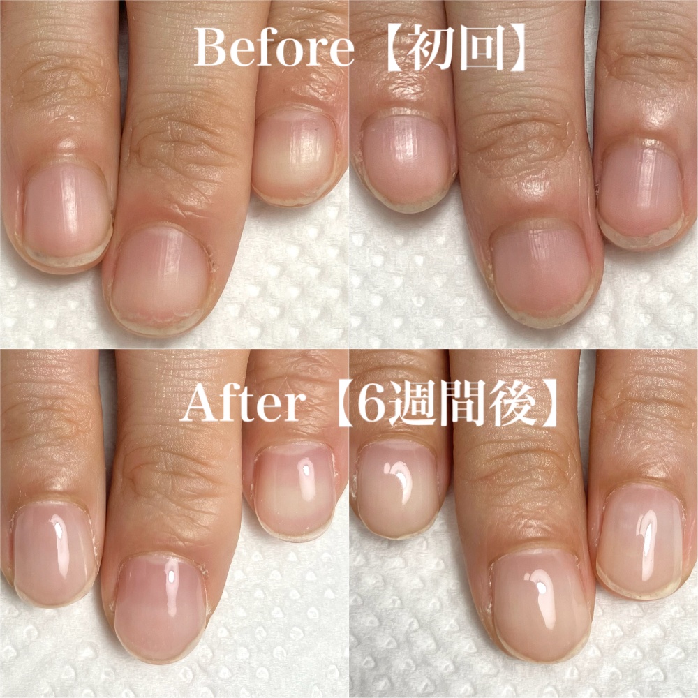 こんにちは😊 神奈川県相模原市上溝 自爪育成ネイルサロン menico(メニコ) です。自爪育成のお客様の変化です✨【6週間】でも変わります!!ぜひご覧ください✨